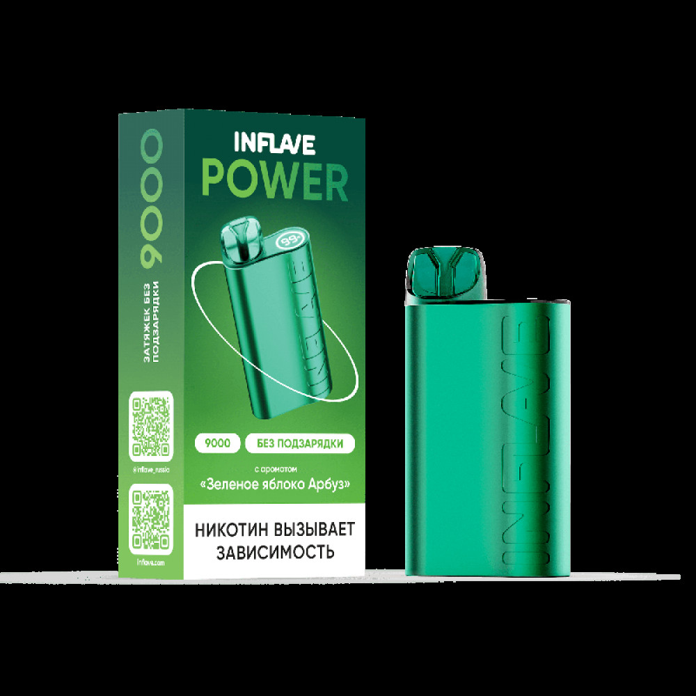 Электронная сигарета INFLAVE POWER 9000 затяжек Зеленое Яблоко Арбуз - купить в Истре